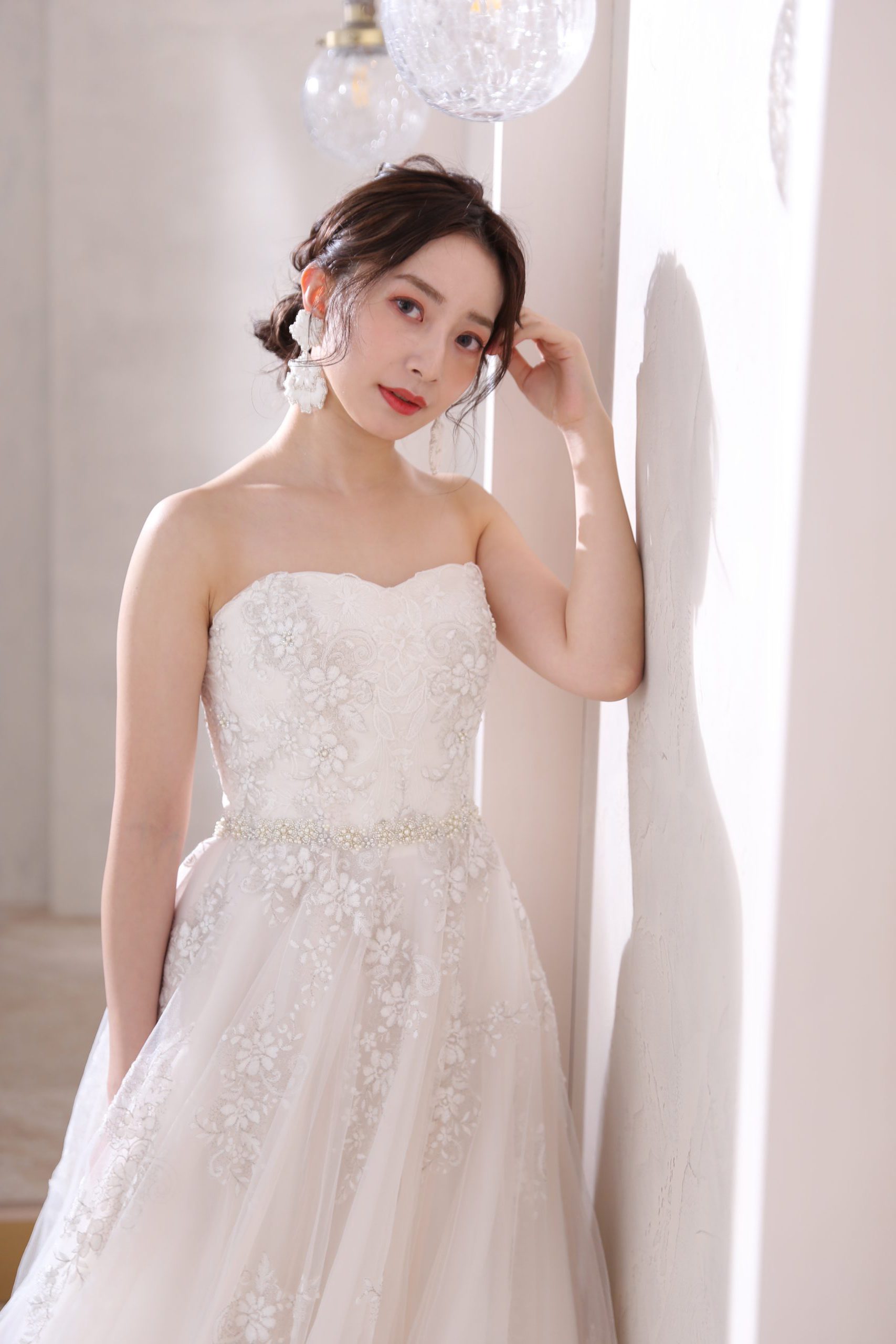 大人ぽい雰囲気があり、胸元のビーズがとても華やかです・:*+.