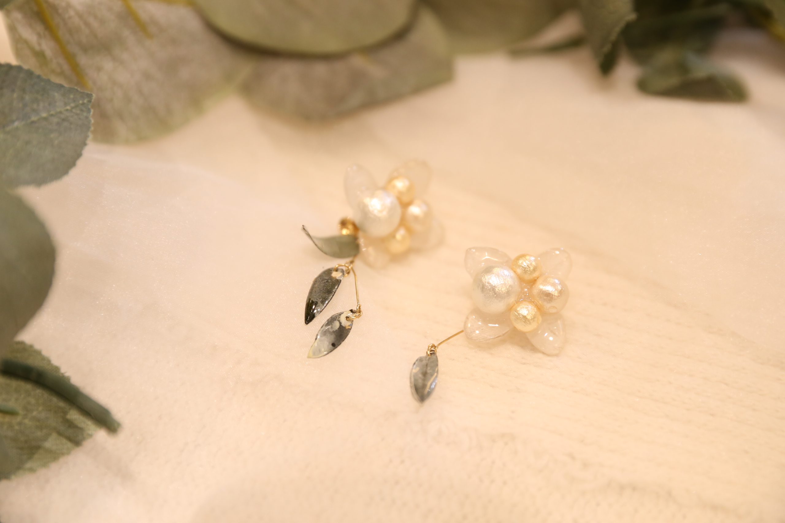 お花がモチーフになっており、中央にもビーズがついておりポイントになっています・:*+.