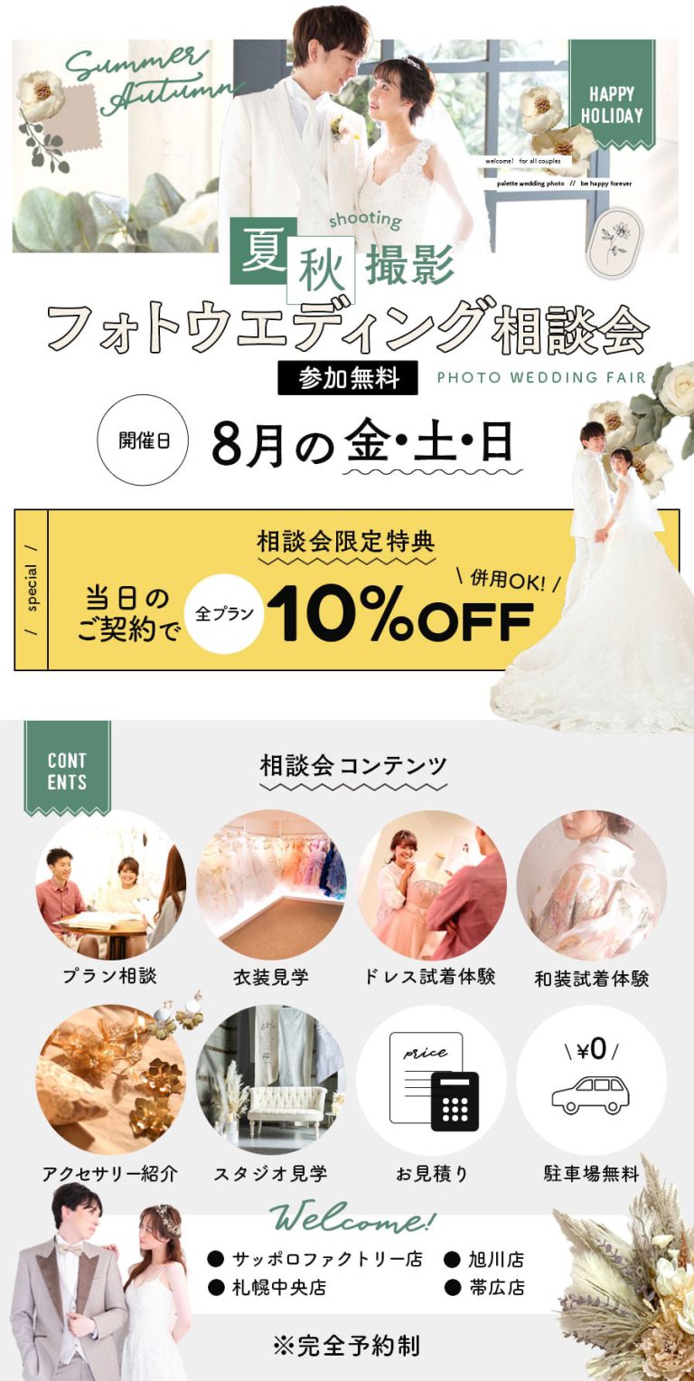 【ブライダルフォト】3月のお得なキャンペーン情報!【サッポロファクトリー店】
