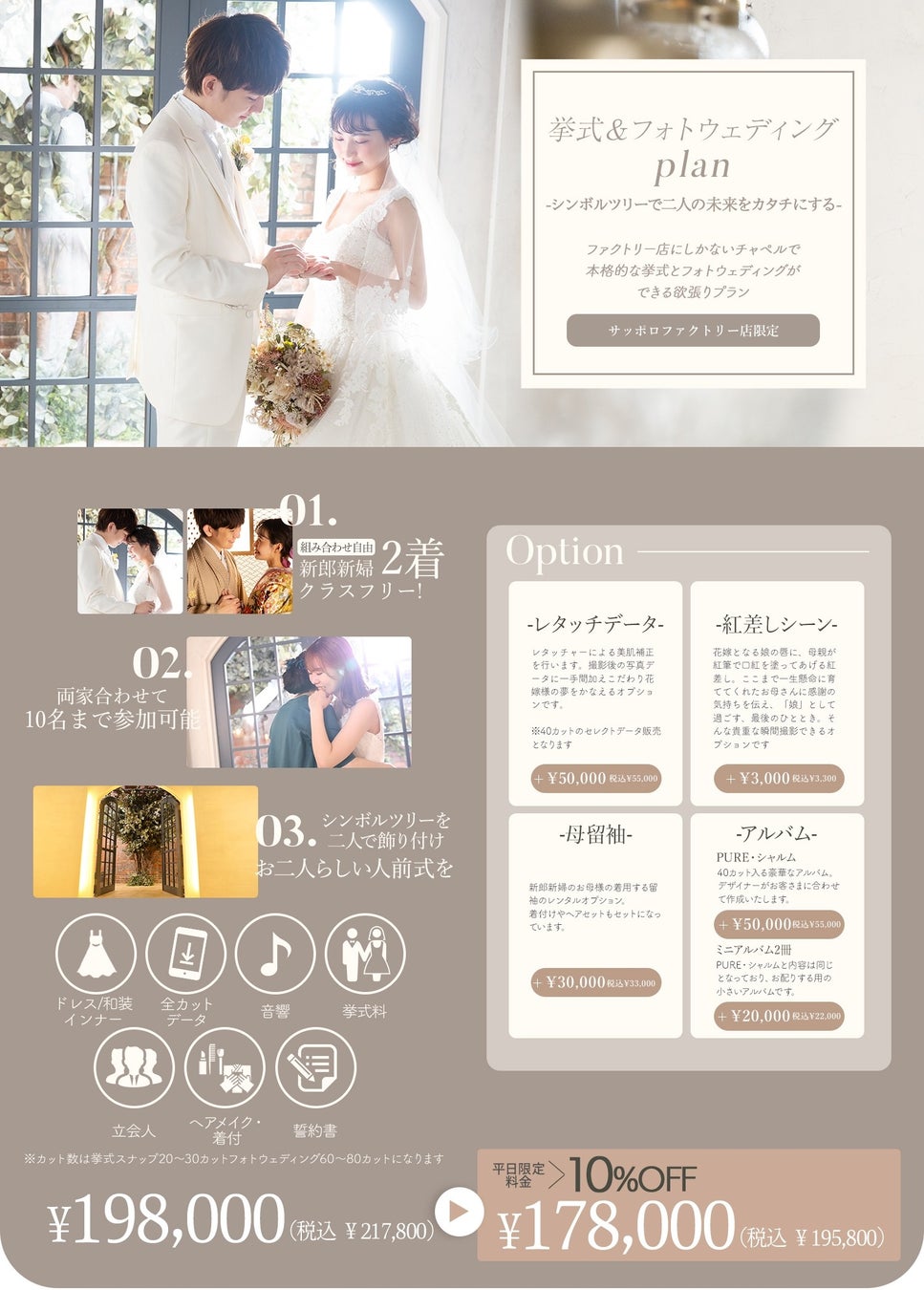 特典内容:初めてのカウンセリング時ご契約でプラン料金から10%オフ※撮影は10月以降でも◎