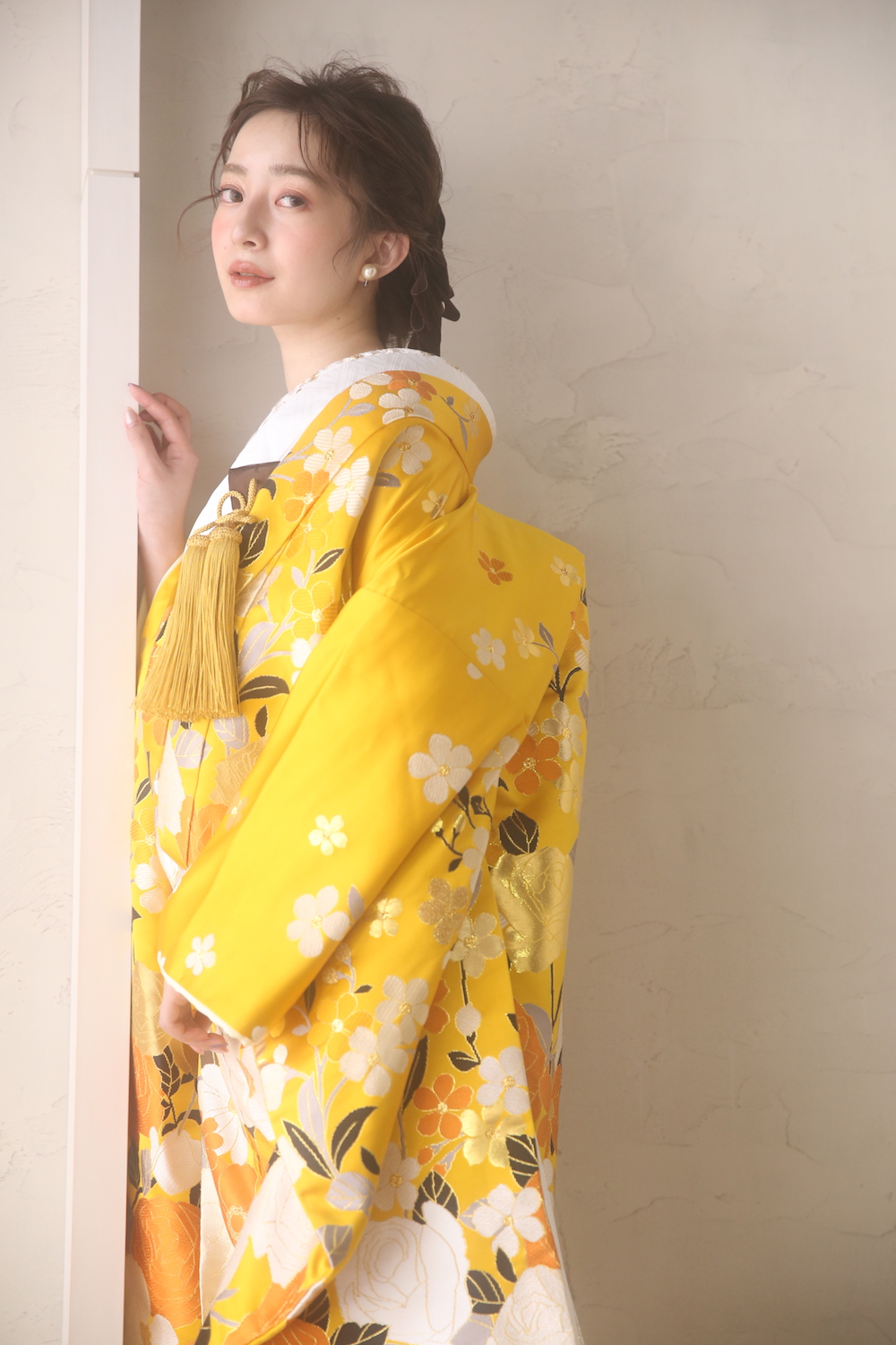 そんなお嫁様におすすめなのがこちらのやまぶきの色打掛・:*+.