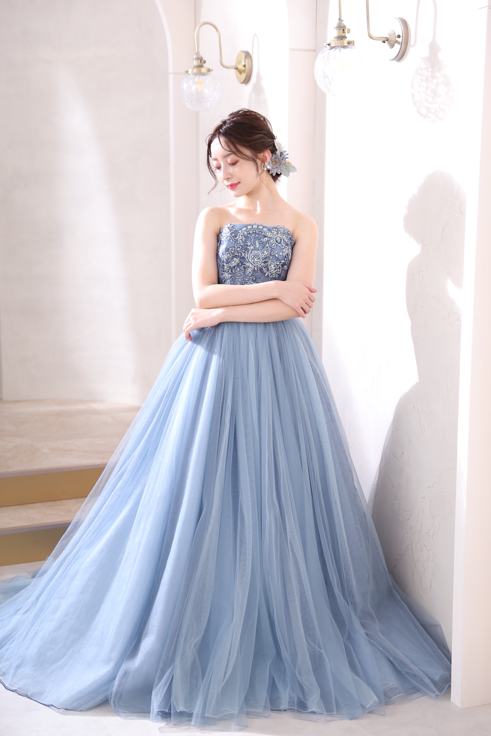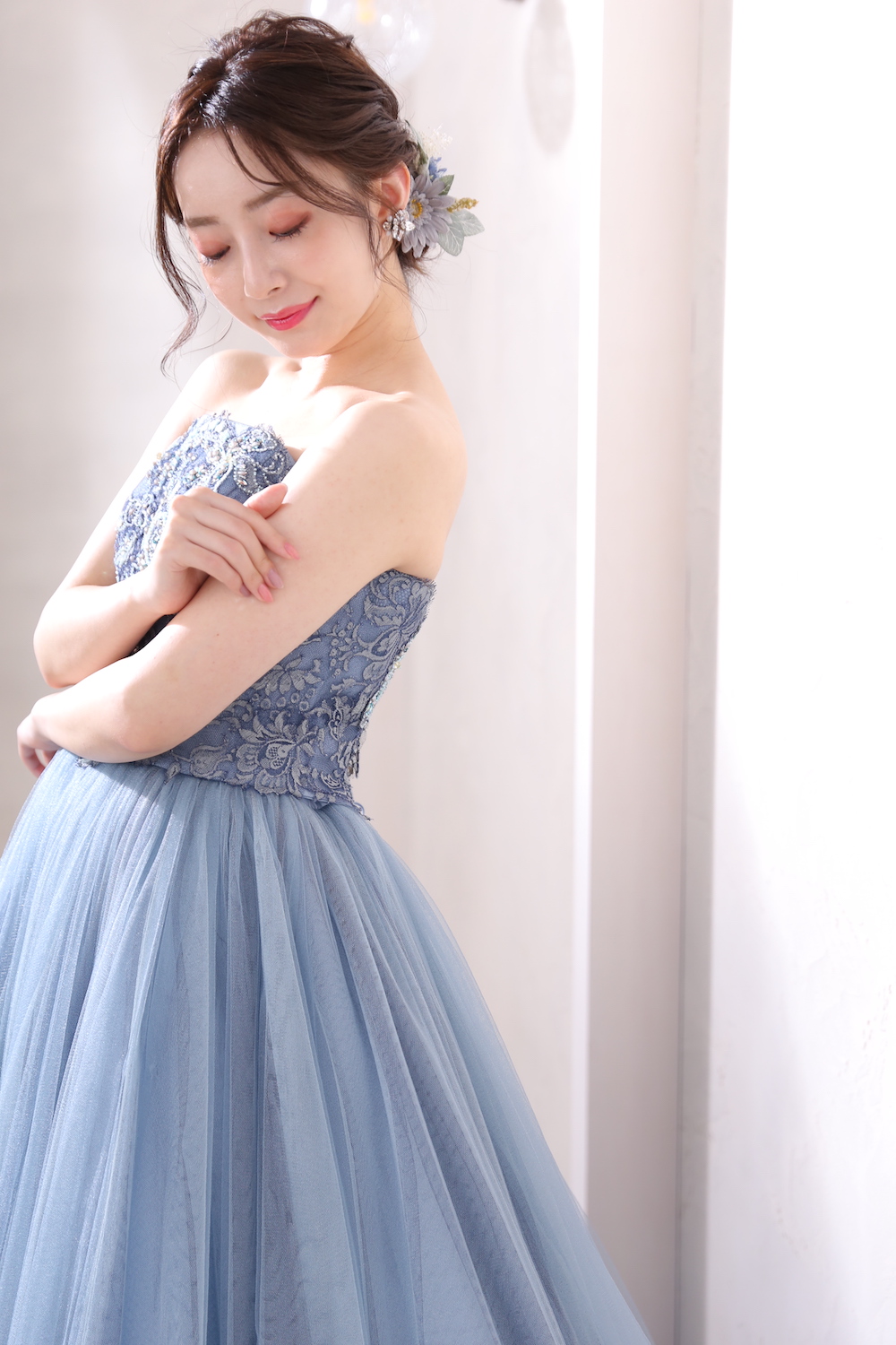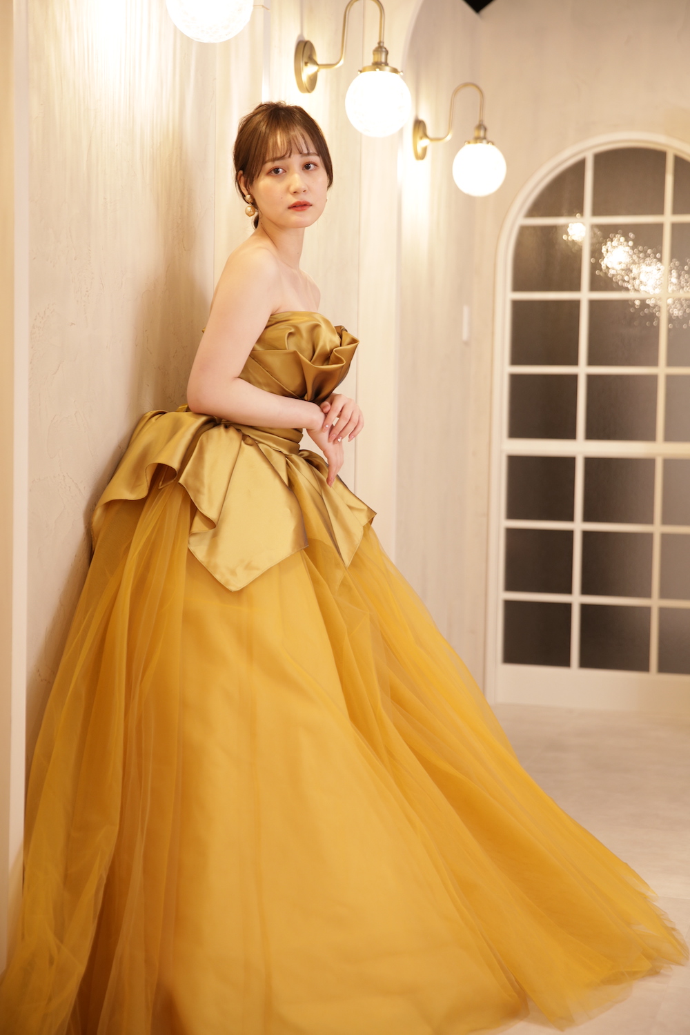 スカートの部分はチュール素材になっておりボリューム感たっぷりのドレスになっております♡