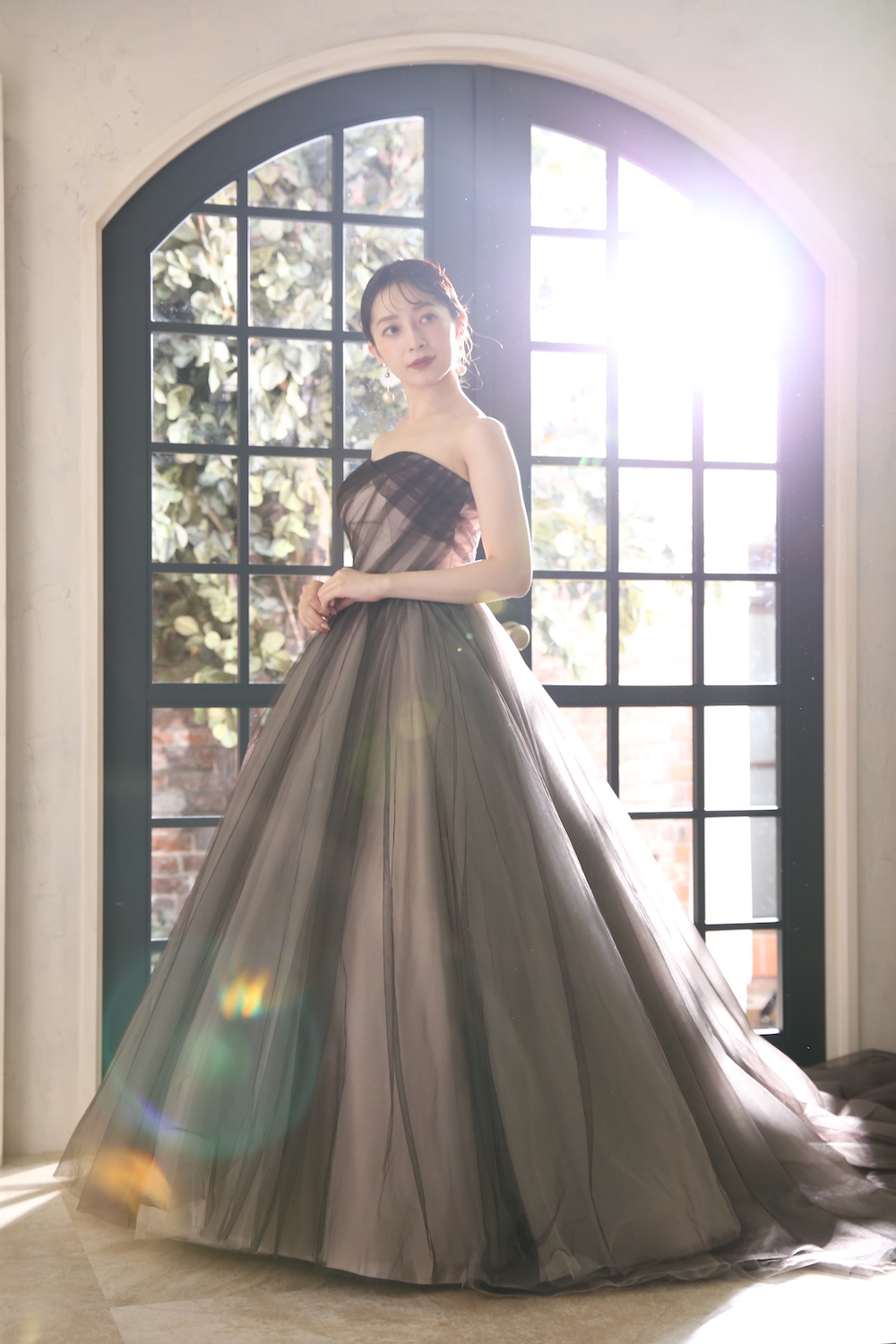 胸元もチュールになっており上品で大人な雰囲気となっております・:*+.