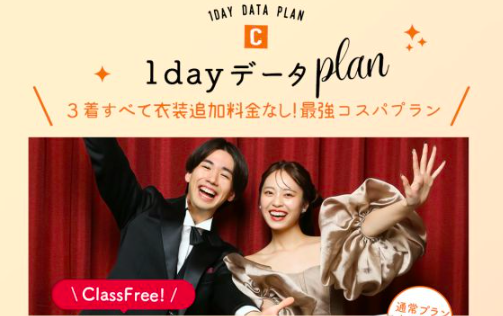 1DAYプランであれば、衣装クラス料金から追加料金なくお好きなクラスのお衣装が選べます!!