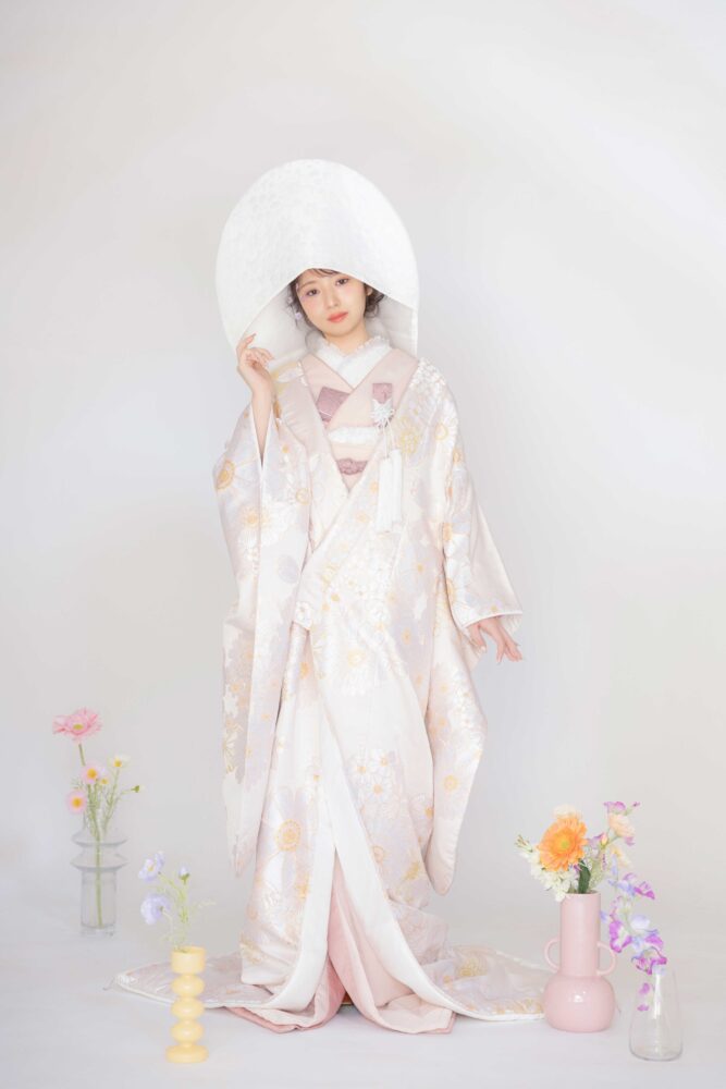 白無垢:日本の伝統的な婚礼衣装です。真っ白な白無垢は「嫁ぎ先の色に染まる」という意味が込められております。