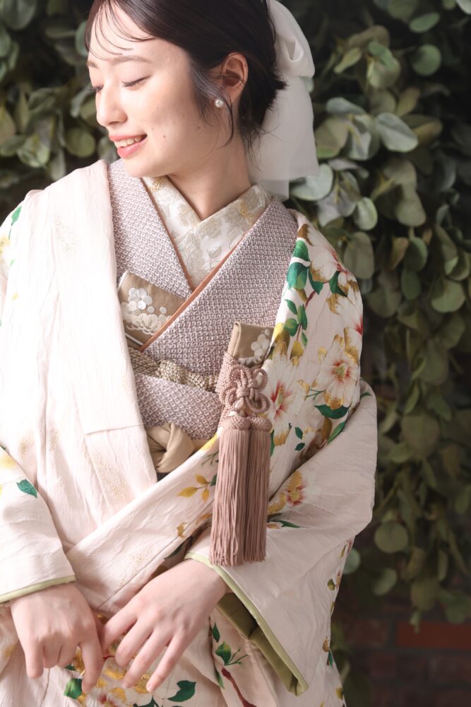 色打掛の柔らかい色合いに合わせて掛下はベージュやグリーンのものを合わせるのがイチオシです!