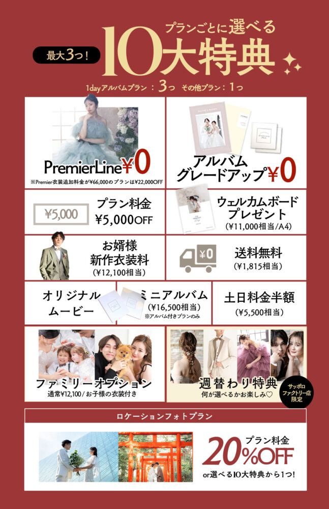 ⚠️PremierLine無料は、PremierLine衣装追加料金が¥66,000のプランまたはPremierPlus衣装の場合は¥22,000OFFとなります。