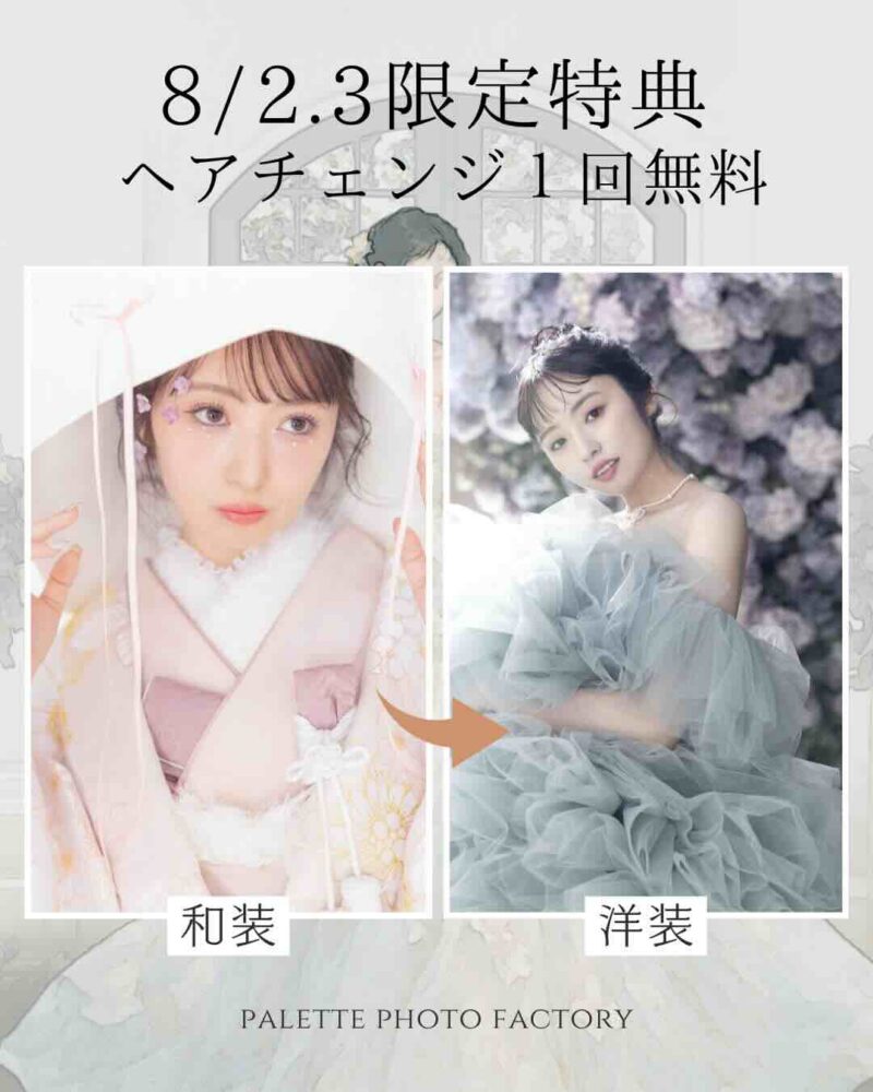 こんにちは!写真工房ぱれっとファクトリー店です! 今月も大好評の"ブライダルフェア"を毎週土日に開催しております+*. 先月大好評だった〝隔週限定特典〟 を8月も開催します!! たった2日間しかないので、ご予約はお急ぎください♪