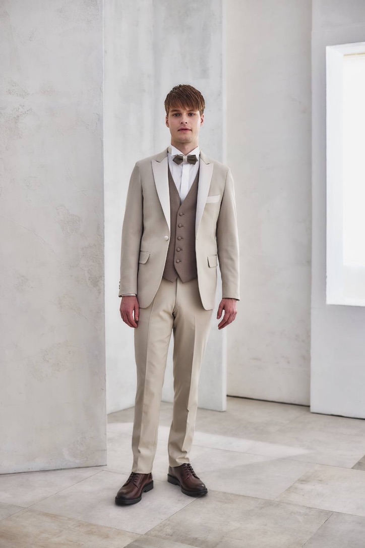 ベージュカラーのタキシードは、落ち着いた色味で柔らかく上品な印象を与えてくれます。