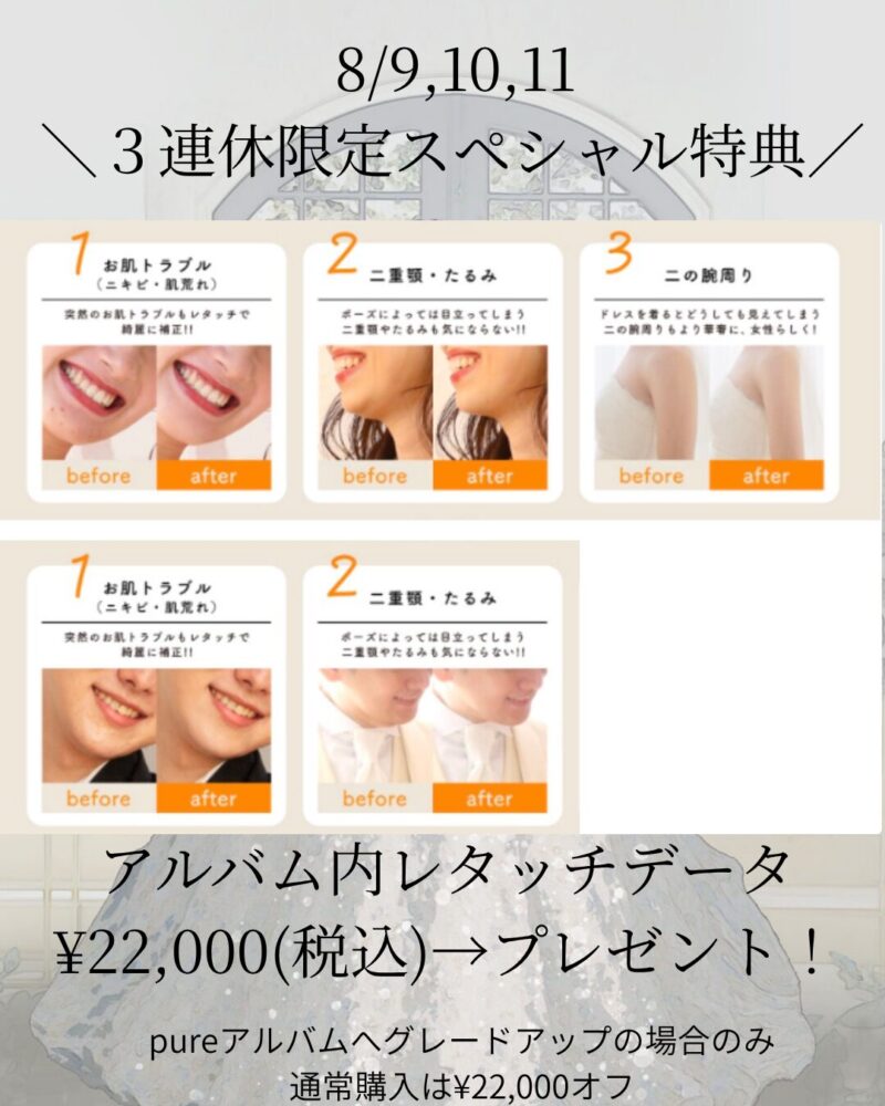 アルバム内レタッチデータ通常¥22,000(税込)→プレゼントいたします!