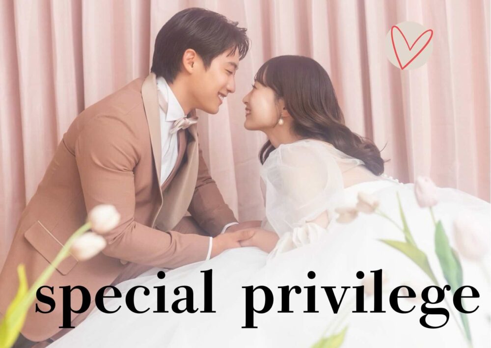その他土日祝日料金が半額、お婿様の新作衣装料金無料など人気オプションが5つもセレクト可能。おふたりでどれが良いかな?と悩むのも楽しみの一つです。