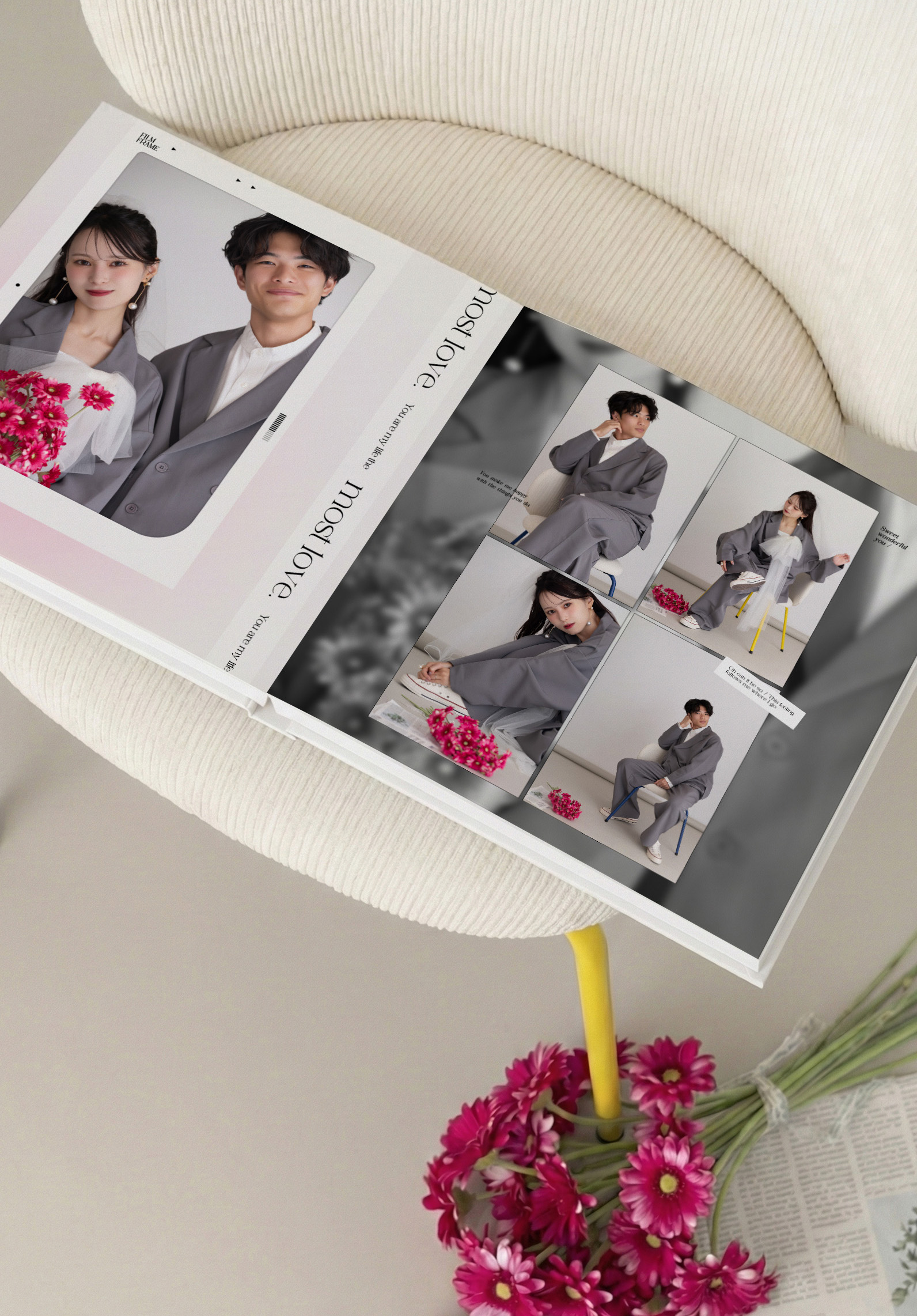 あえて装飾を抑えたクールでシンプルなレイアウトが、お二人の存在感を際立たせます。