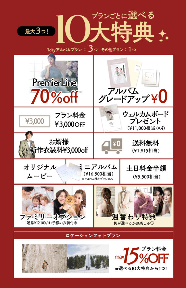 追加¥15,000(税込¥16,500)にて、1dayアルバムプラン内でお選びいただける