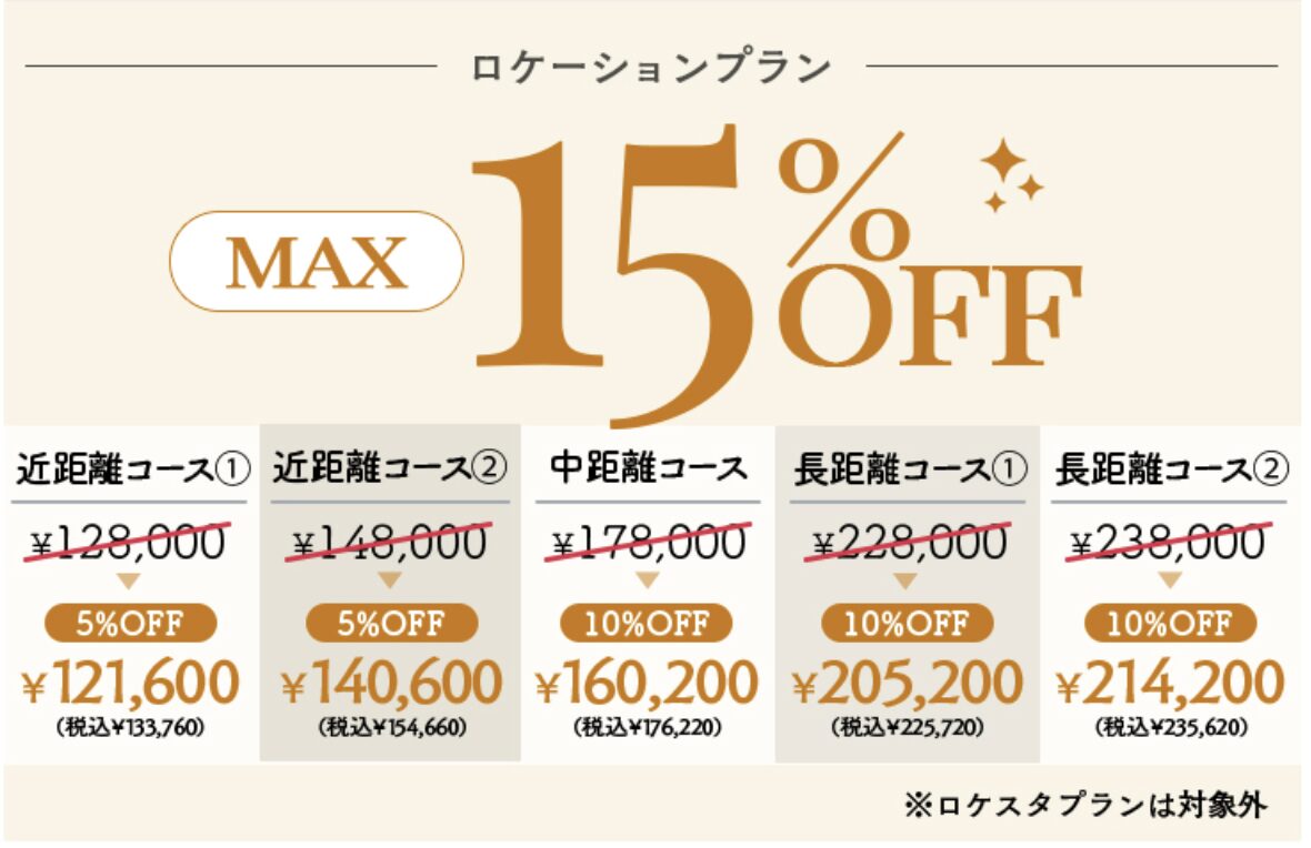 平日に撮影を行うだけで、土日より1万円お得に♡