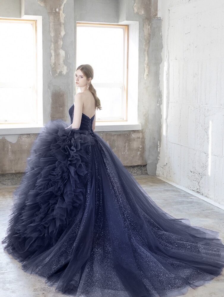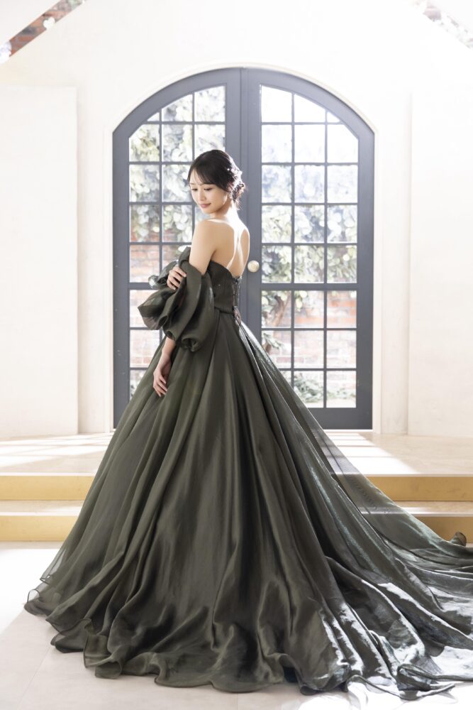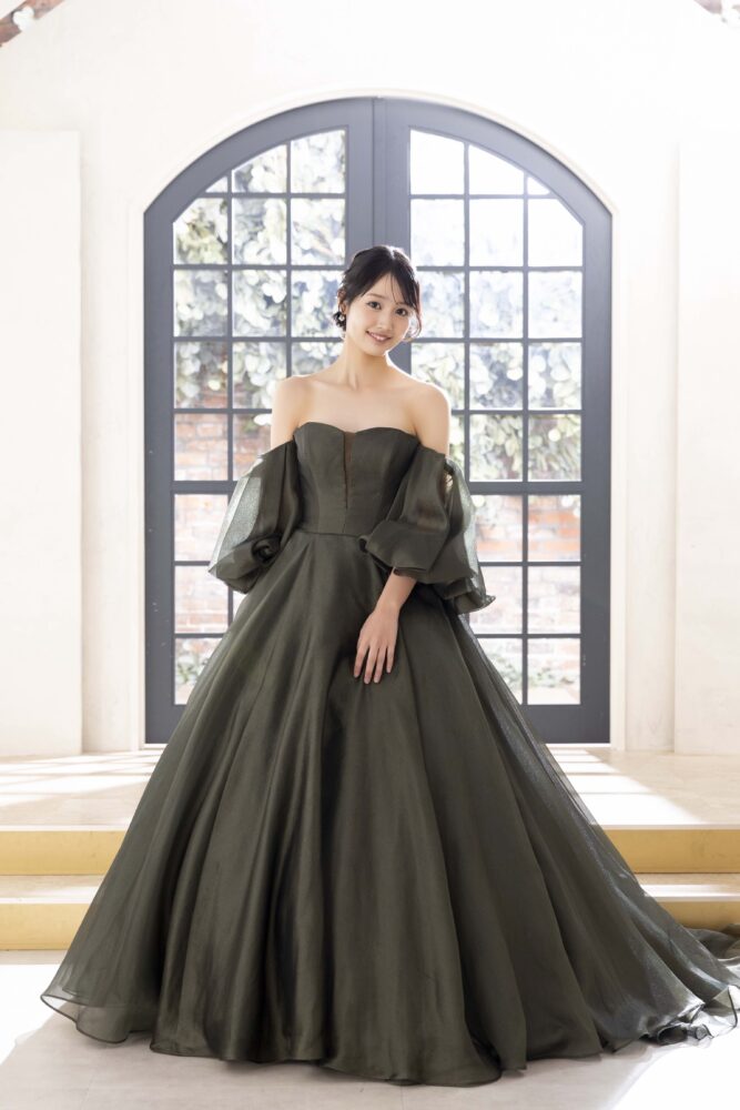 袖やチュールを組み合わせてシックで可愛らしくも美しくも着こなせる、麗しいデザイン性と色合い。