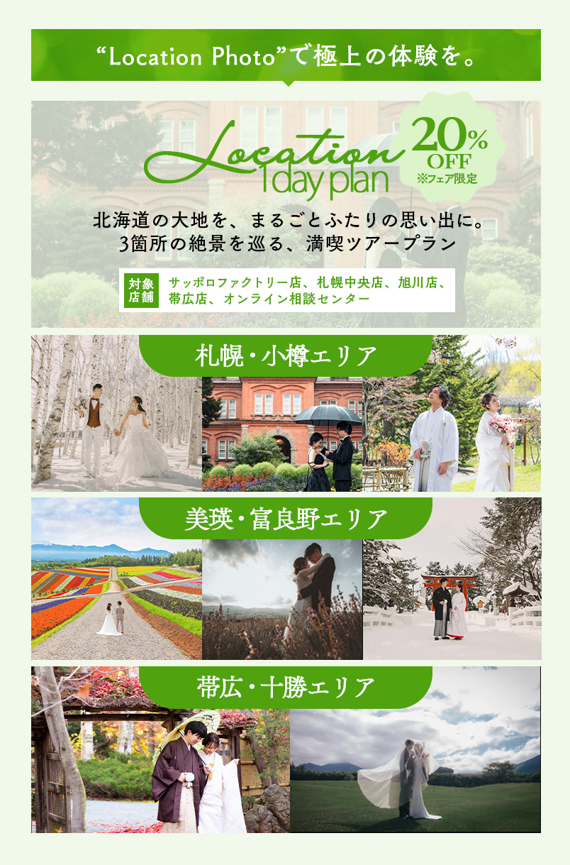 - > 北海道のフォトウエディングは写真工房ぱれっと | 『ロケーション1dayプラン』全道各地の贅沢ロケーションフォトプランが登場!