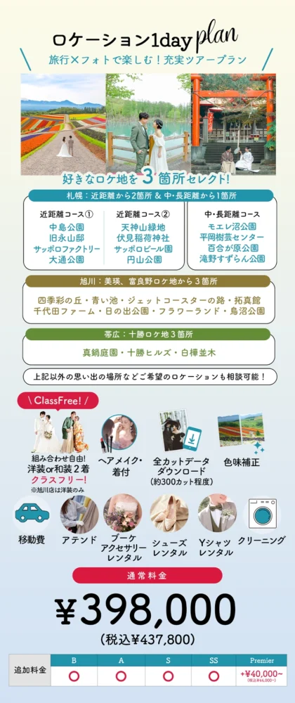 ※ロケーションプランの詳細は、店舗からの距離や衣装によって変動します