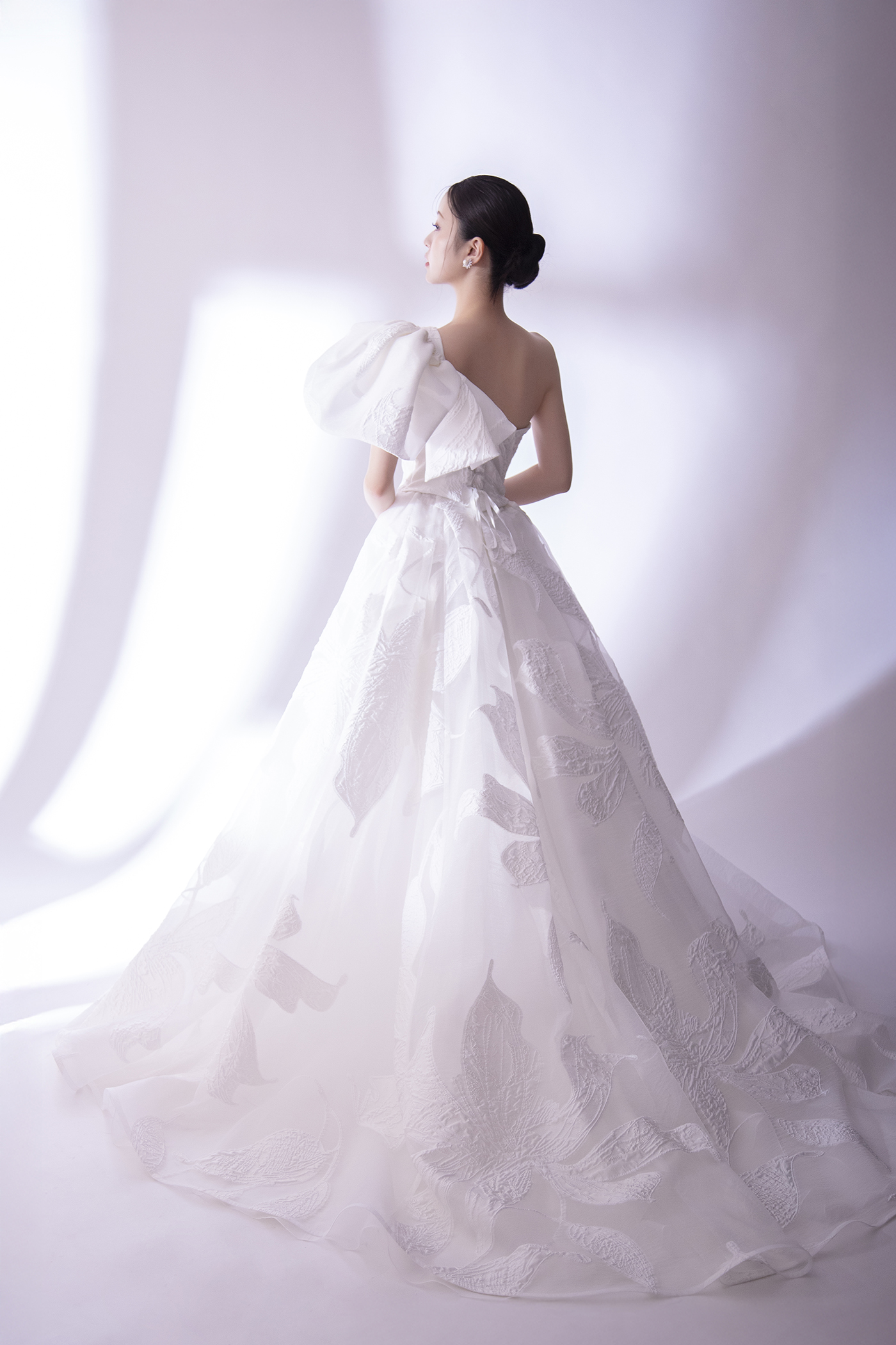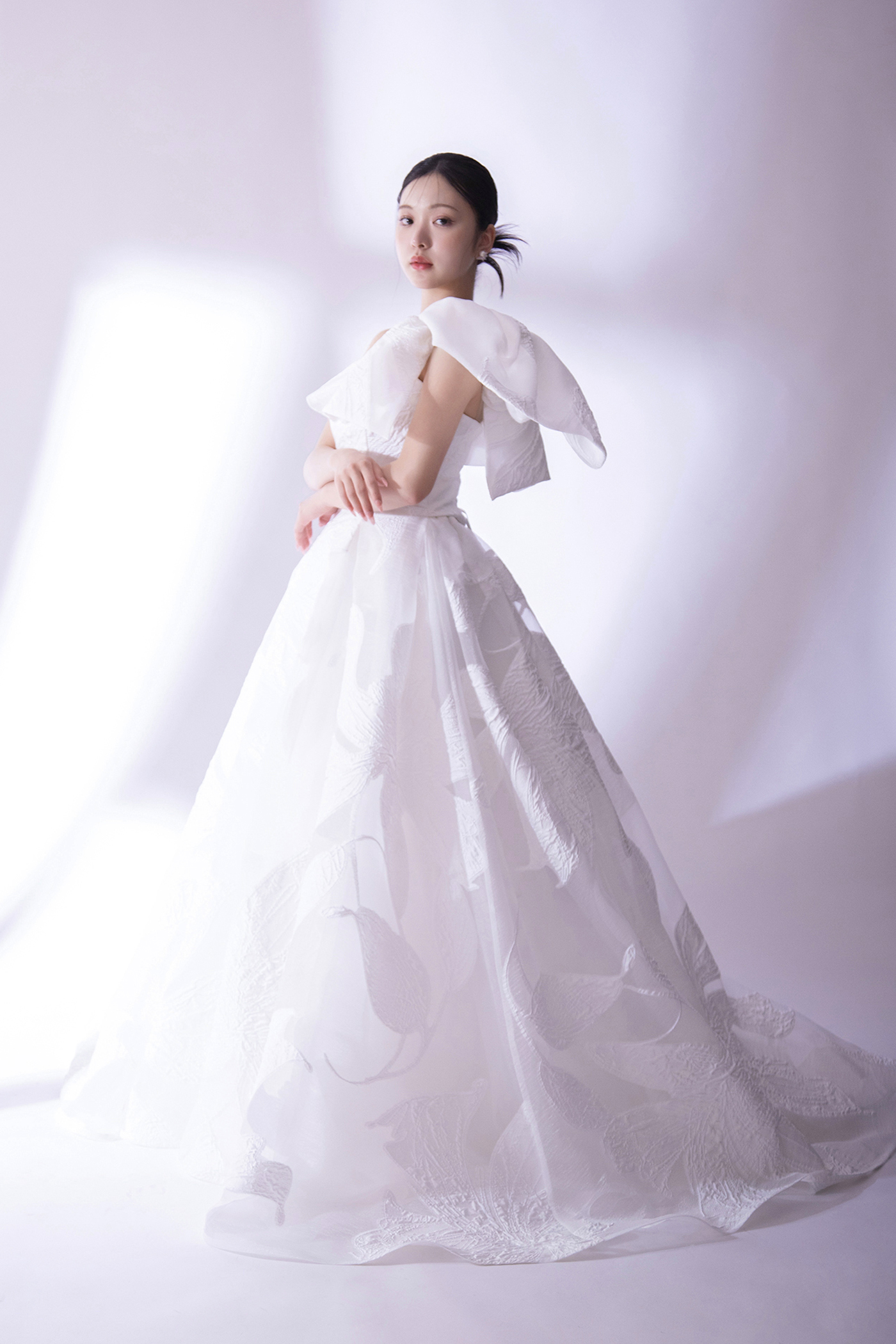 スカートのボリューム感が目を引く1着は まさに “主役級” 。