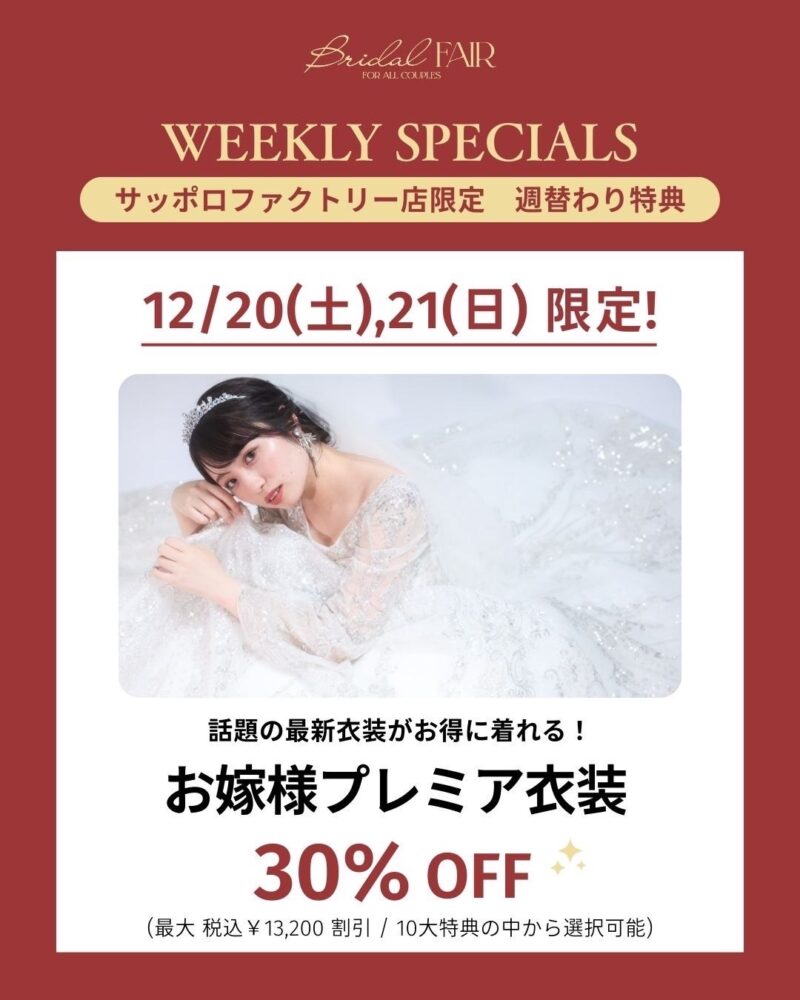 2025/12/17札幌クリスマスブライダルフェア✨今週の週替わり特典もご案内!!