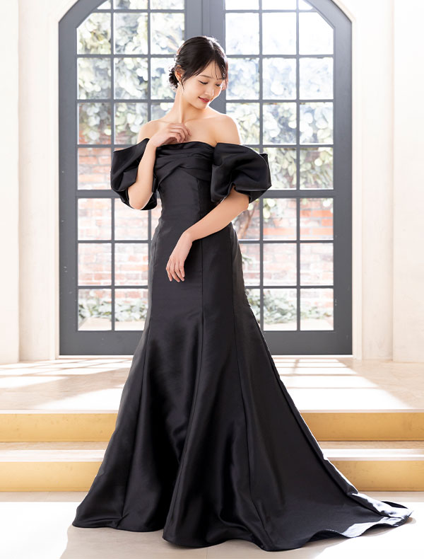 マーメイドラインの黒ドレスで大人っぽくスタイリッシュな演出を