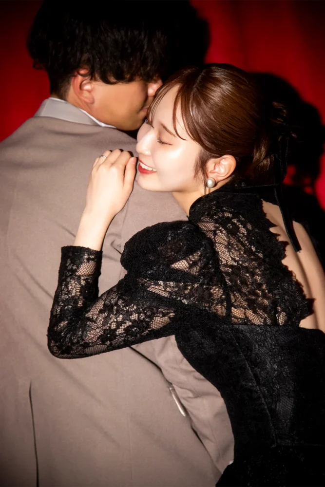 特にナイトウェディングやキャンドルの灯りが美しい会場では、黒の持つ落ち着きと華やかさが際立ち、幻想的な雰囲気に包まれます。