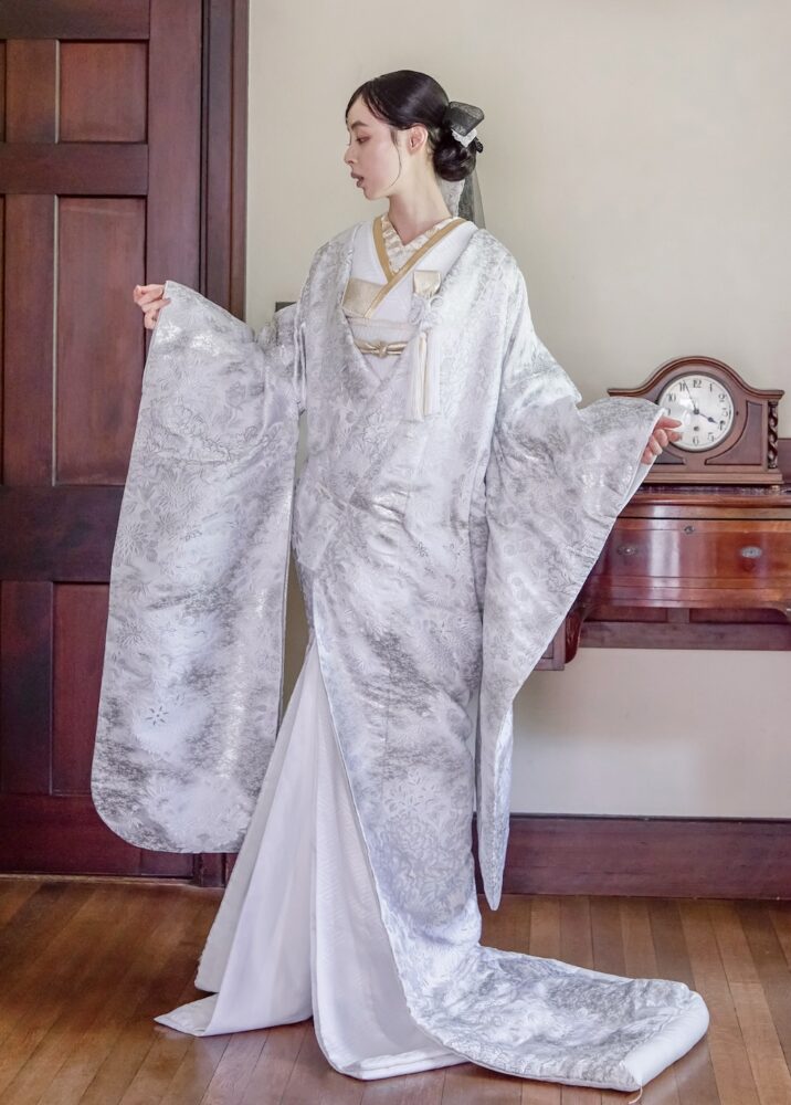 一見すると「白」一色に見える白無垢も、織りの模様や質感で印象がガラリと変わるもの。