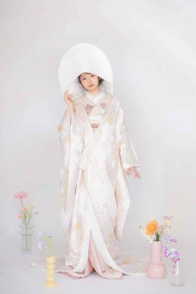 当店の衣装コレクションには、伝統的な赤の色打掛から、トレンドのニュアンスカラーまで豊富に揃っています。