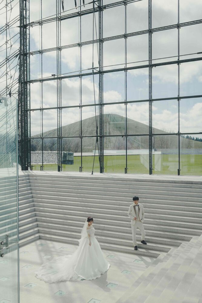 旧永山邸はファクトリー店からも近く、和装でのご撮影で大変人気なロケーション地となっており、モエレ沼公園のピラミット内はまるで屋外にいるような開放感の中で、天候を気にせず撮影を楽しむことができます 。