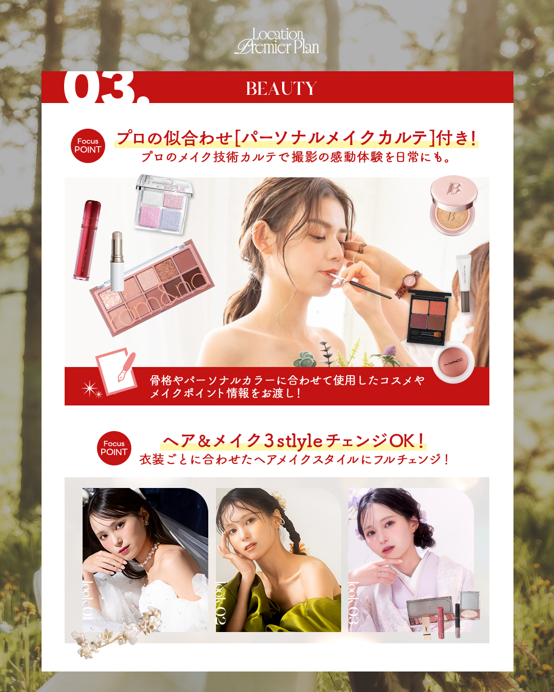 03.ビューティー面も抜かりなし!撮影日の魔法を日常へ。