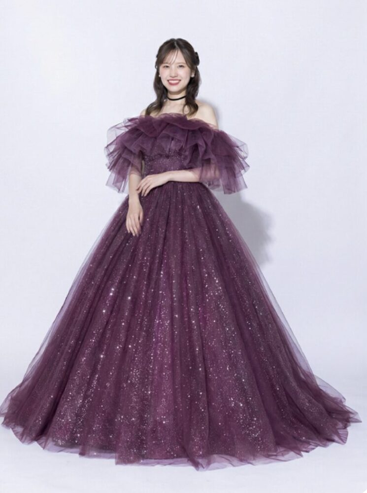こちらのパープルドレスのご試着が期間限定で可能です。