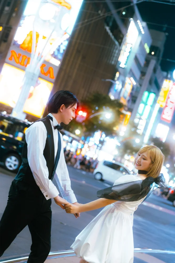 サッポロファクトリー周辺や、大通公園、中島公園といった歴史あるスポットでの撮影は、まるで映画のワンシーンのようなドラマチックな仕上がりに。