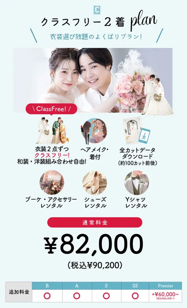 さらに、衣装選び放題の「クラスフリー」プランなら、新作やブランドドレスも追加料金を気にせず選べるので、自分だけの「世界にひとつ」のコーディネートを楽しめます。