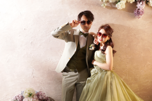 皆さんこんにちは! 北海道札幌市にある写真工房ぱれっとサッポロファクトリー店です! 今回は1dayフォトウエディングをご利用いただいたお二人をご紹介させていただきます♪ 小物を使って個性豊かな一枚に☆