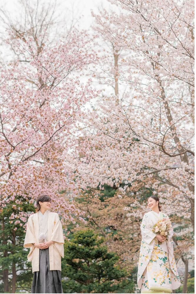 🌸【札幌の桜ウェディング】満開の桜と残す!春のロケーションフォトで叶える「ふたりの始まり」