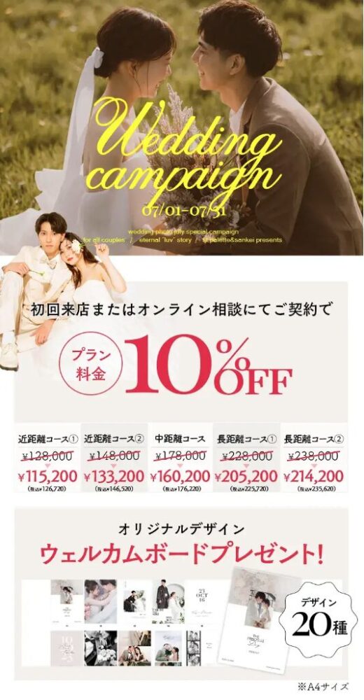 オリジナルデザイン!ウェルカムボードをプレゼント!(デザイン20種類)