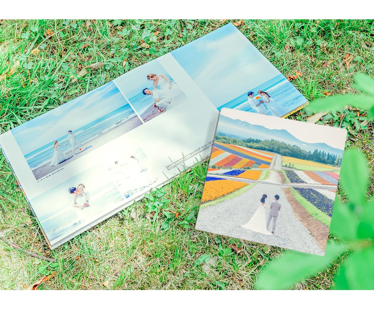 贅沢なフルデジタル仕様の40カット入りアルバム。ロケーションならではのパノラマ写真を表紙に配置可能なマットな質感の一冊です。