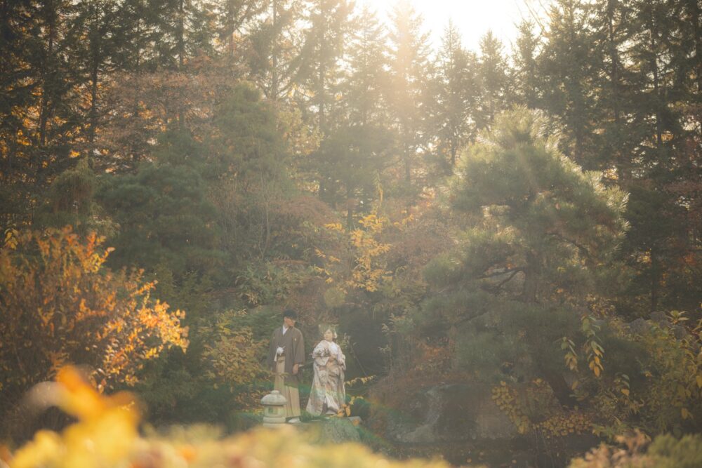 和装でも洋装でも自然が引き立つフォトが残せるので、春や秋の京都旅行を兼ねて前撮りやウェディングフォトを撮る方が急増しています。