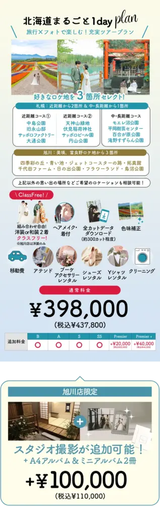 これからまさに北海道はハイシーズン! 短い夏〜秋を楽しむベストシーズンとなります。 そこで北海道をまるごと楽しめるロケ新プラン登場しました! 旅行がてら北海道でウェディングフォトを撮影検討のカップルは大必見です♩