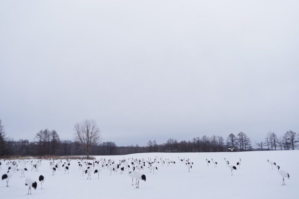冬の静かな風景の中で、優雅に舞うタンチョウの姿はまさに幻想的!写真愛好家にも人気のスポット♪