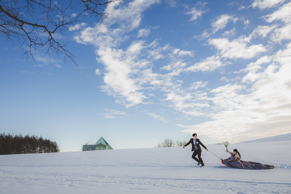 色とりどりの紅葉も素敵ですが、北海道らしい景色で撮影するなら圧倒的に〝雪ロケ〟がおすすめ!