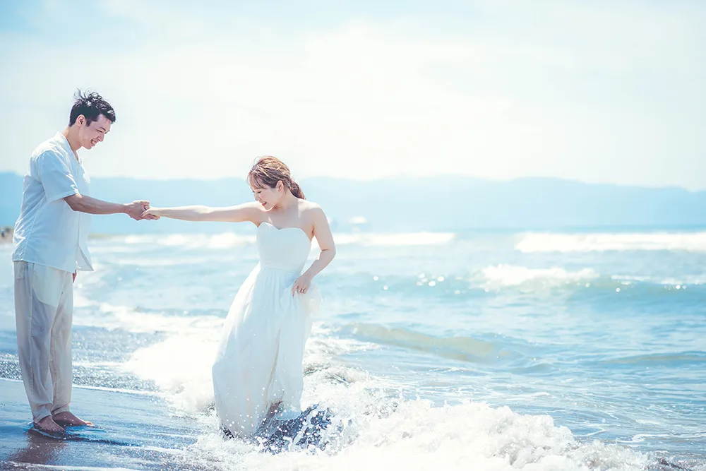 沖縄では、リゾートらしい青い海や空を背景に、開放感あふれるロケーションフォトが楽しめます