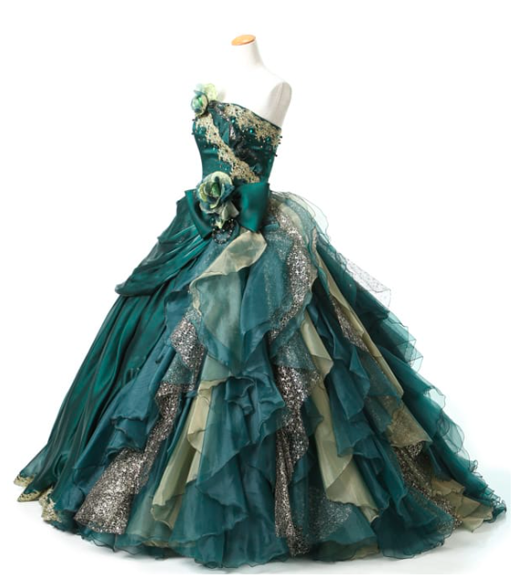 上半身にある刺繍と、前に垂れ下がるリボンが目を引くドレス♡