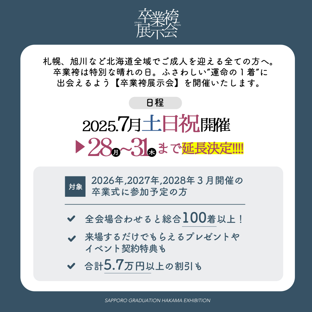2025/07/01【2025年7月土日祝】札幌卒業袴展示会開催