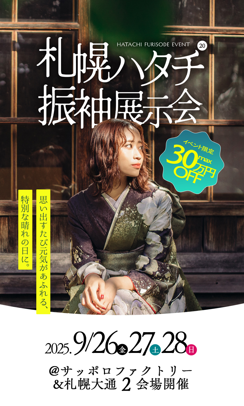 2026年1月成人式はラストチャンス!2027、2028年1月成人式の方も。札幌振袖レンタル展示会のお知らせ