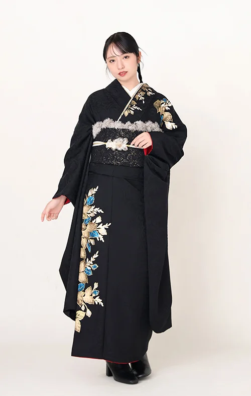 ヴィンテージ&モード あえての黒や深緑に、大ぶりのゴールド刺繍。帯小物をシンプルにまとめるのが2027年流。