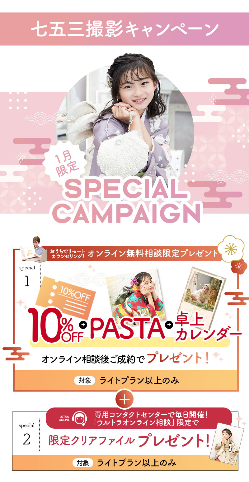 1.オンラインカウンセリングご予約でプラン料金から10%オフ,パスタ&卓上カレンダープレゼント♡