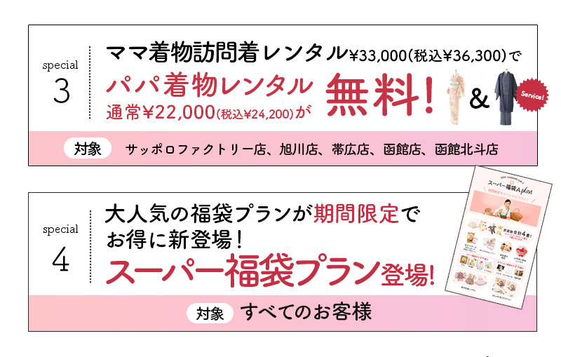 ママ着物追加(¥33,000)でパパ着物無料キャンペーンを実施決定!!!