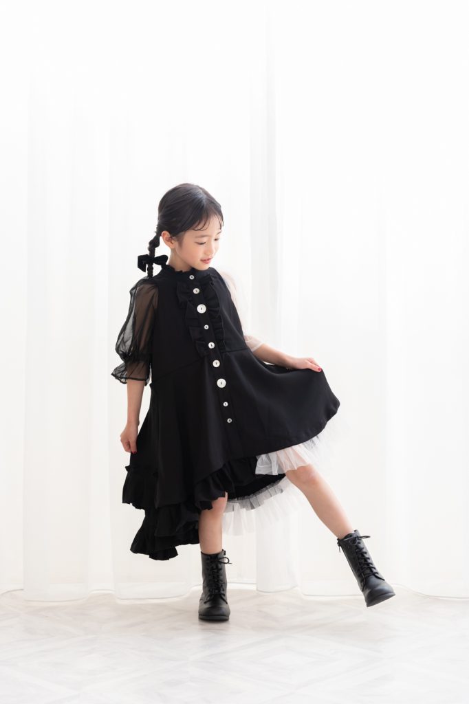 黒と白のドレスにカラフルな花束がおしゃれで可愛いらしいビジュアルとなっております。