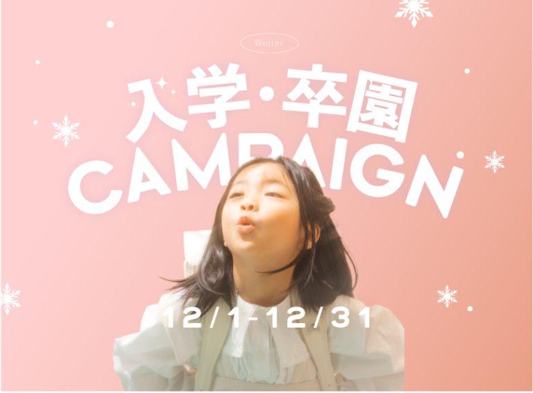 12月の卒園・入学のお得なキャンペーンをご紹介します!入学撮影は通年化になりましたので逃してしまった方も安心!後撮り絶賛承り中☆