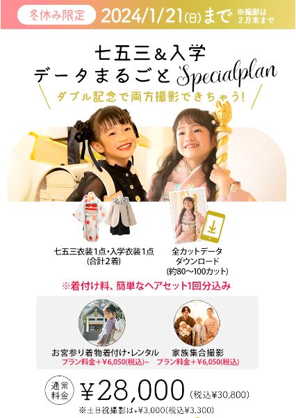 2024/01/16【早撮りも後撮りも】七五三と入学をセットで撮影!別々で撮るよりもお得に撮れるおすすめプラン♪